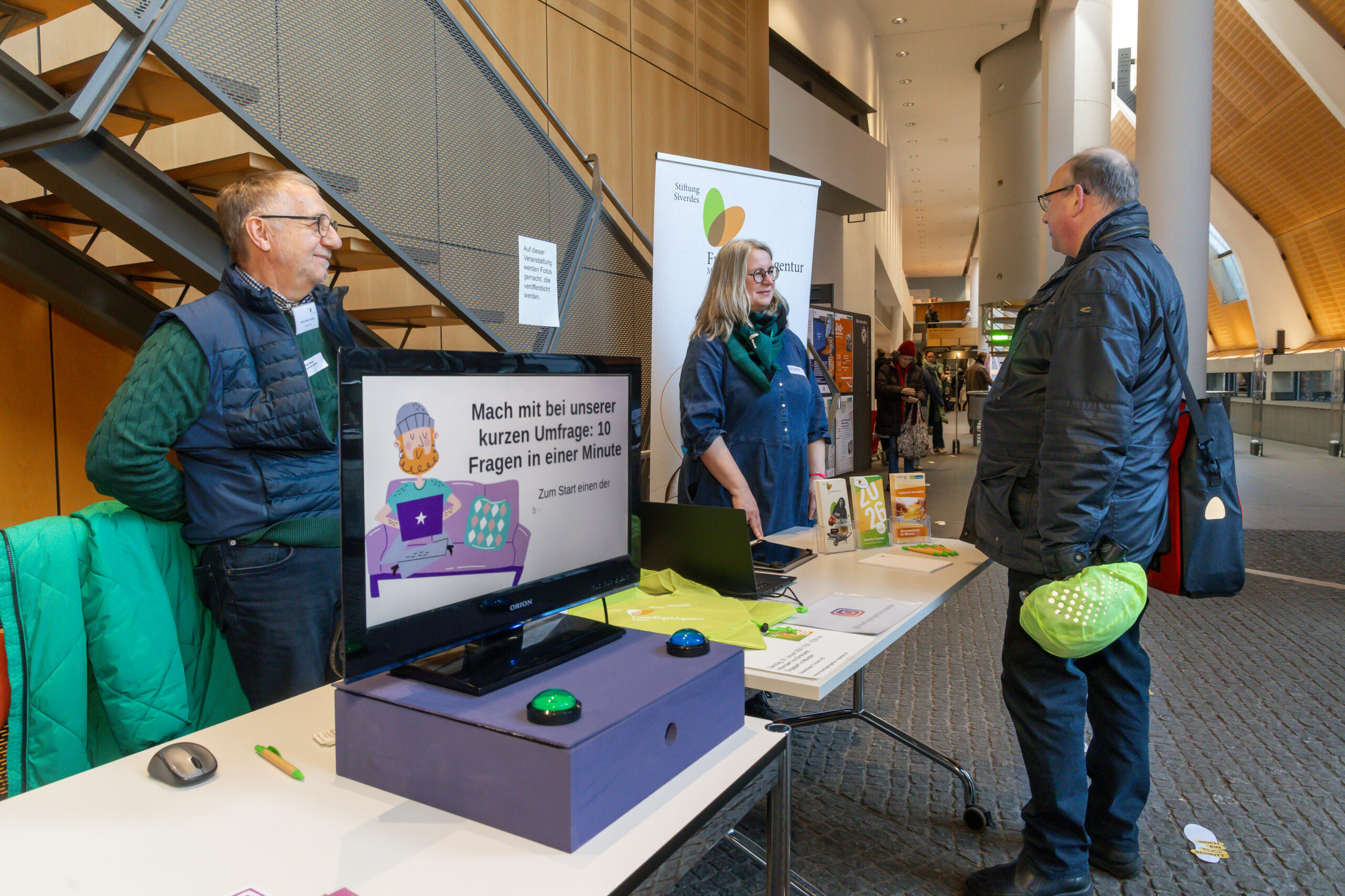 Schon beim Ankommen wurde klar: Das Interesse am digitalen Ehrenamt ist groß. An den Infoständen wurde lebhaft diskutiert, gefragt, erklärt und vernetzt. Ehrenamtliche berichteten von ihren Erfahrungen, Organisationen stellten ihre digitalen Projekte vor – von Online-Patenschaften und digitaler Nachhilfe über Unterstützungsangebote für Senior*innen bis hin zu technisch geprägten Projekten rund um Open Data und Programmierung für den guten Zweck.